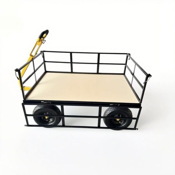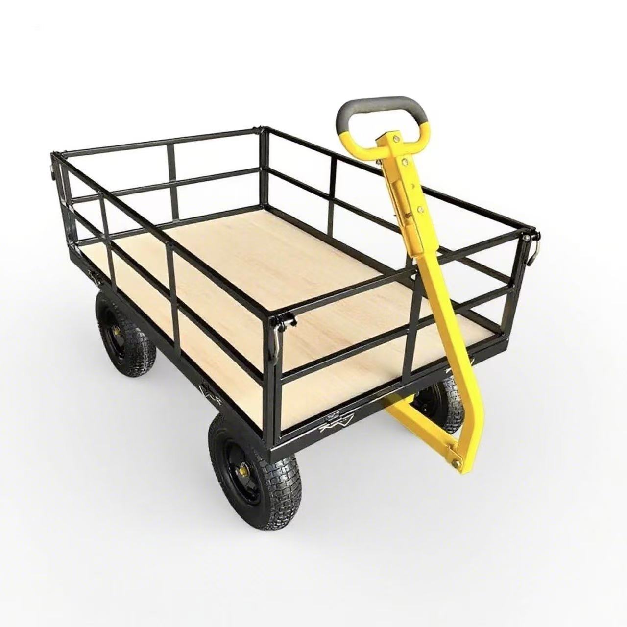 Carro de jardín de acero resistente de 1200 libras con plataforma extraíble y manija giratoria